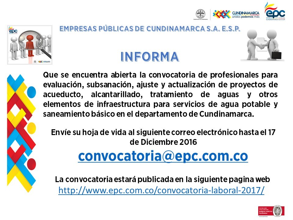 EMPRESAS PÚBLICAS DE CUNDINAMARCA S.A. E.S.P INFORMA Que se encuentra abierta la convocatoria de profesionales para evaluación, subsanación, ajuste y