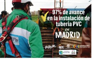 Cundinamarca, jueves 25 de abril de 2019 Con una inversión de 500 millones de pesos,se vienen ejecutando la instalación de 30 metros de tubería PVC tipo Reb Steel de 68 pulgadas, con el fin de