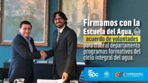 El Gerente General de Empresas Públicas de Cundinamarca S.A. ESP, Andrés Ernesto Díaz Hernández, y el Director de la Escuela del Agua – Lluc Pejó I Climent, firmaron un acuerdo de voluntades con el propósito de