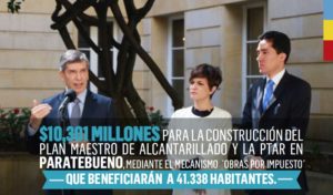 Cundinamarca, 21 de marzo de 2018 SCundinamarca quedó seleccionada entre uno de los proyectos de acueducto y alcantarillado de 27 proyectos más presentados en obras de infraestructura vial, de energía, y de educación que invertirán