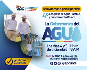 Empresas Públicas de Cundinamarca (EPC) confirmó que el 04 y 05 de diciembre realizará la IV versión de su congreso Agua para el Progreso; encuentro que convoca a los alcaldes, prestadores de servicios de los