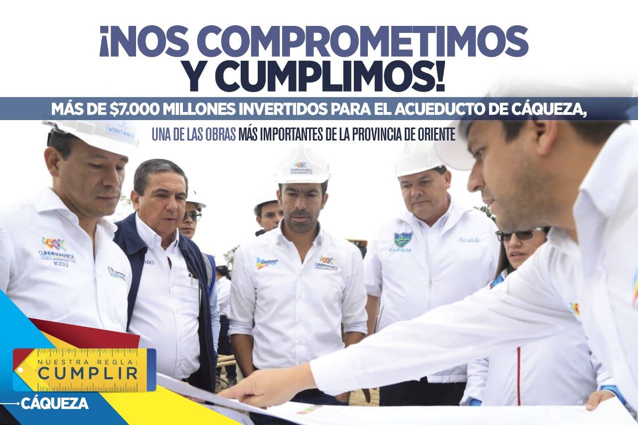En la capital de la provincia de Oriente se realizó la visita número 72 de la gira Gobernador en Casa #NuestraReglaCumplir correspondiendo al municipio de Caqueza. En este vista el Gobernador de Cundinamarca Jorge Emilio Rey Ángel y la Subgerente de Empresas Públicas de Cundinamarca Nidia Riaño, hicieron un recorrido al proyecto “Construcción del Plan Maestro de Acueducto y Construcción Planta de Tratamiento de Agua Potable del Casco Urbano de Cáqueza”, en la que participaron el alcalde municipal, Guillermo Gutiérrez Cruz, concejales y comunidad en general.